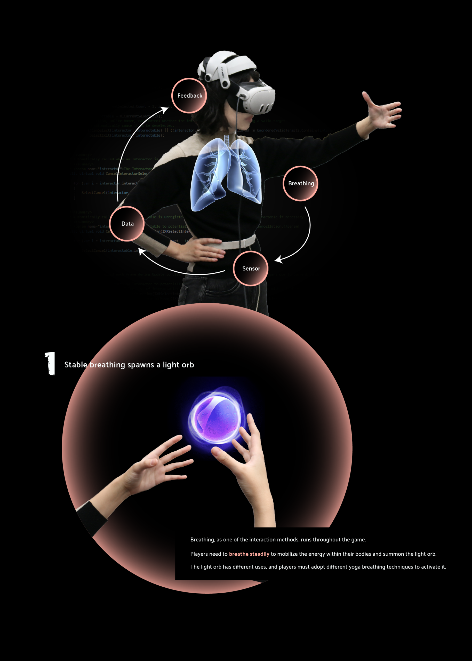 Independently built the system using Unity and sensor integration, translating breathing principles into intuitive, learnable interactions.