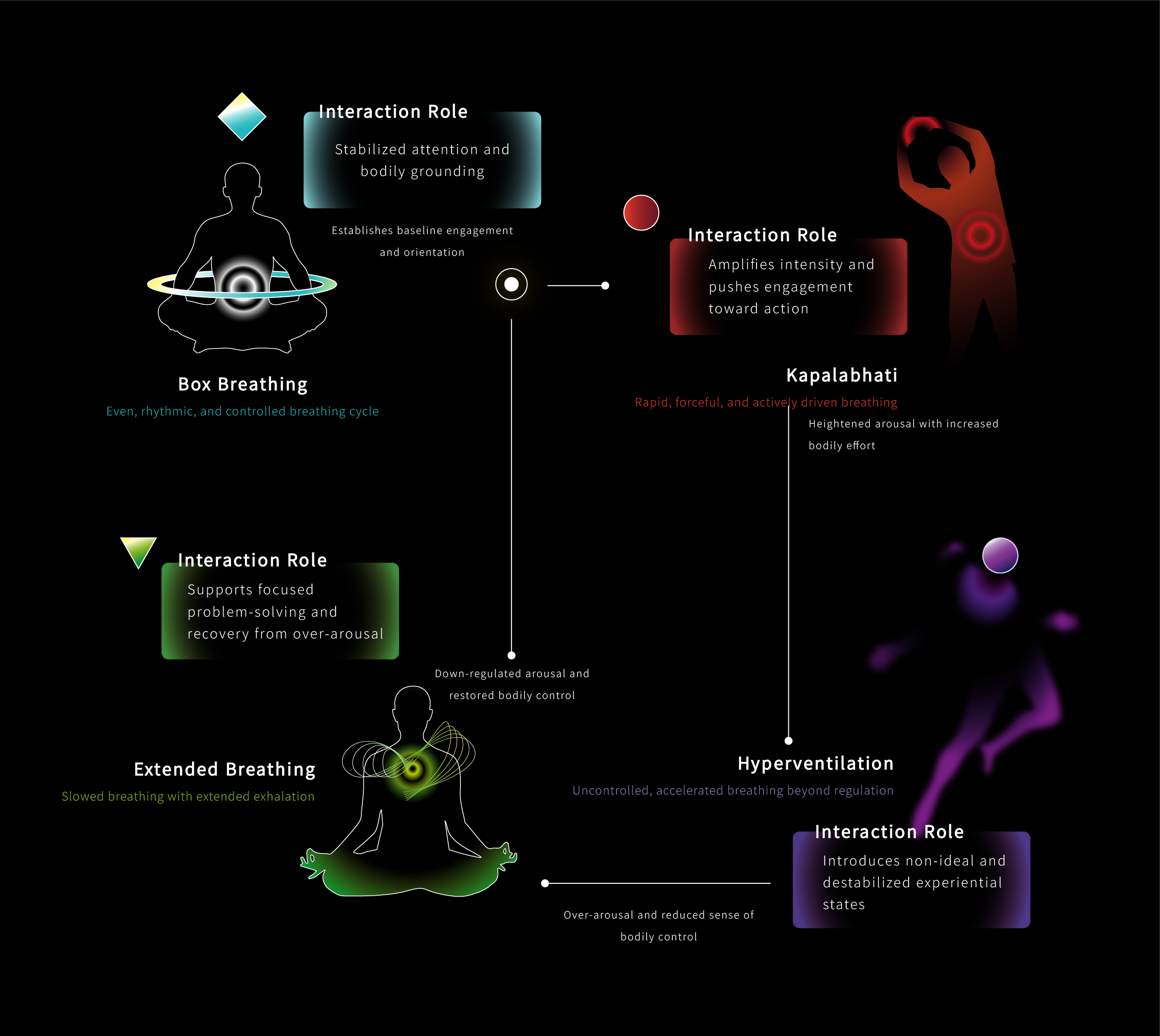 Mapped distinct breathing patterns to control movement, cognition, and narrative pacing, informed by user testing on physical engagement and cognitive focus.